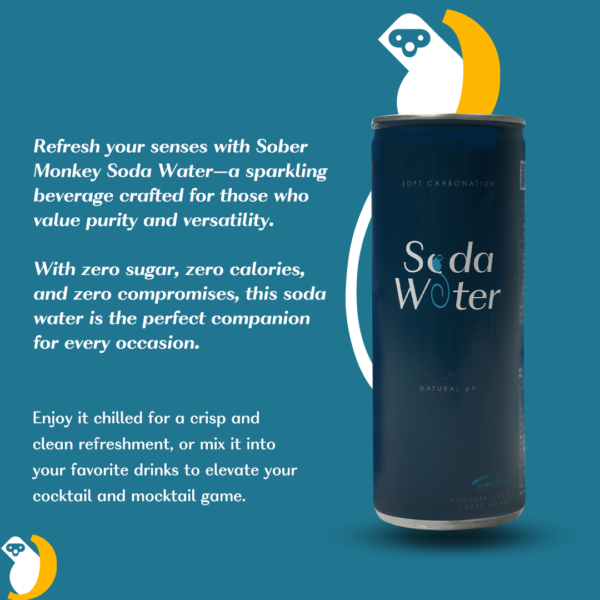 Description: Refresh your senses with Sober Monkey Soda Water—a sparkling beverage crafted for those who value purity and versatility. With zero sugar, zero calories, and zero compromises, this soda water is the perfect companion for every occasion.